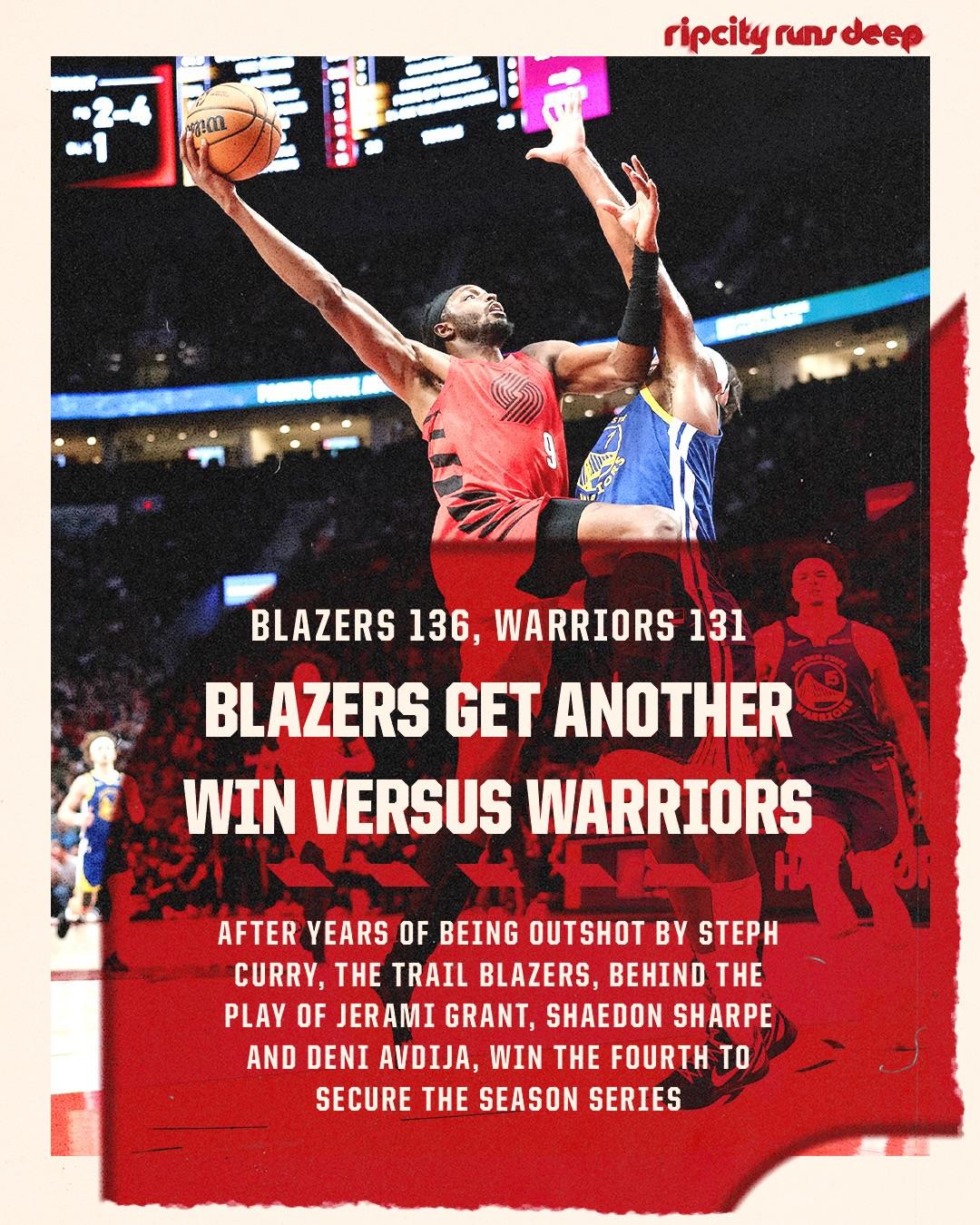 开拓者官方更新ins:我们本赛季第三次击败勇士!