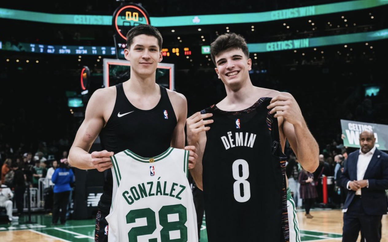 从皇马室友到NBA新秀!冈萨雷斯和杰明赛后互换球衣