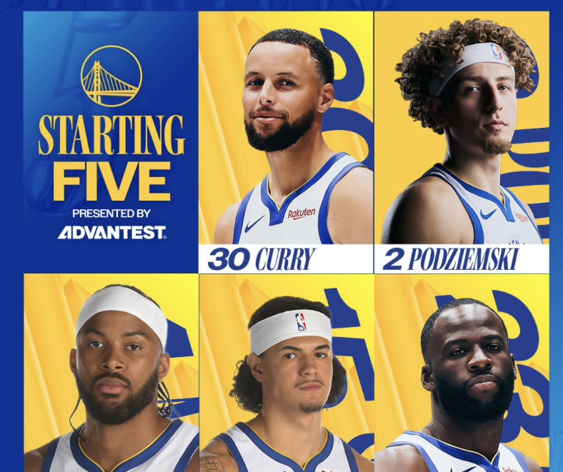 勇士首发:库里、波杰姆斯基、穆迪、桑托斯、格林