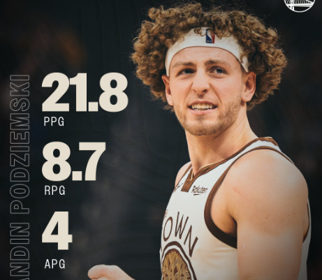 勇士社媒分享波杰姆斯基近4战数据:21.8分8.7篮板4助攻