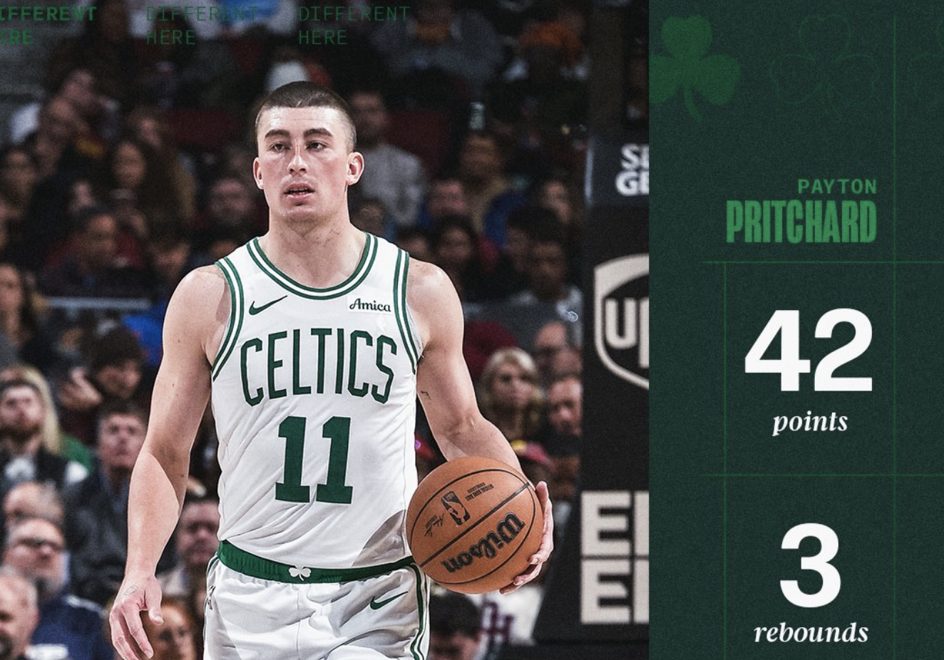 佩顿-普里查德出场不足31分钟砍下42分,队史第四位