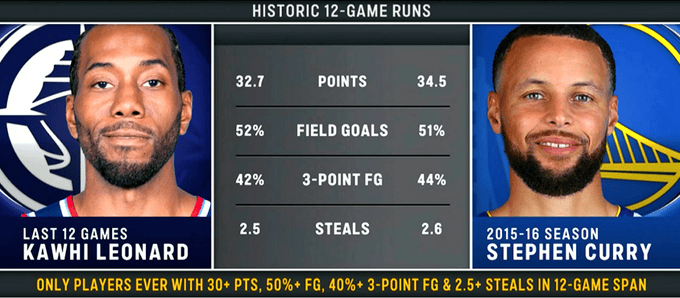 伦纳德弧顶三分一箭穿心再中,目前已狂砍30分3篮板4助攻