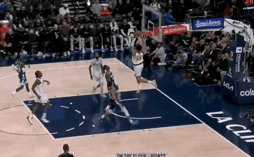 克尼普尔底角接球追身三分命中,目前3中3得到10分