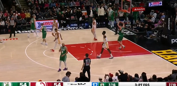 凯尔特人半场54-54战平老鹰,加尔扎5投5中得到13分