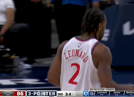 基本盘!伦纳德命中本场第一记三分,得分也来到21分
