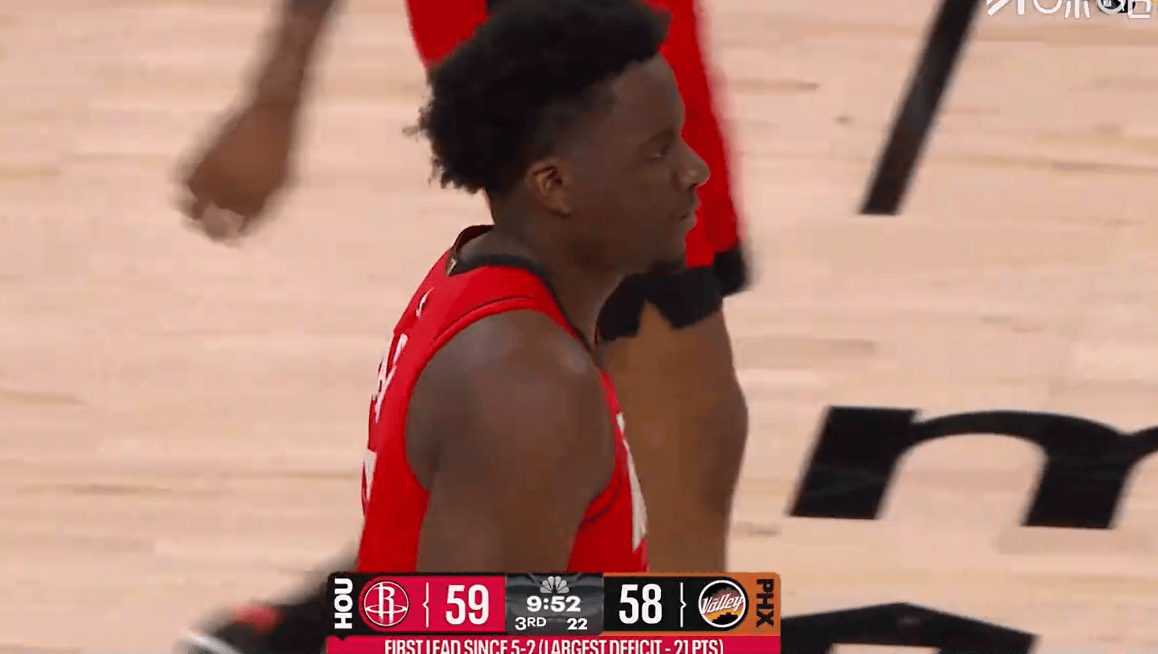 卡佩拉篮下勾手打进,火箭最多落后21分现已经反超太阳
