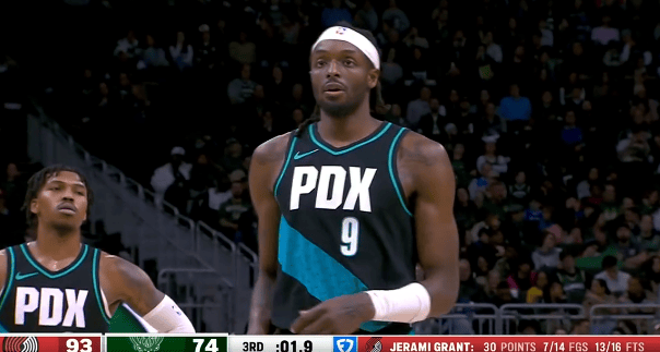 格兰特三节17罚14中砍下31分,开拓者三节结束领先雄鹿21分