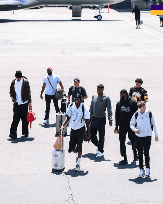 准备G3!湖人官方晒众球员登机穿搭照:前往休斯顿