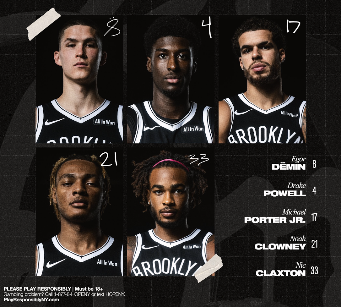 篮网首发:杰明、鲍威尔、小波特、克劳尼、克拉克斯顿