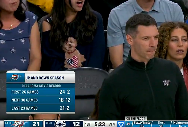 首尾呼应!雷霆开局26场拿到24胜2负,过去23场拿到21胜2负