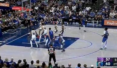 爱德华兹迎着两个人高难度三分投进,森林狼还剩40秒领先4分