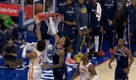 杰伦-约翰逊突破上篮,巴洛补防送出关键钉板封盖