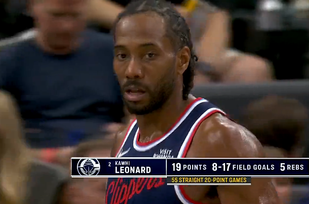 伦纳德抢断反击单臂滑翔劈扣拿19分,快船追至落后雷霆20分