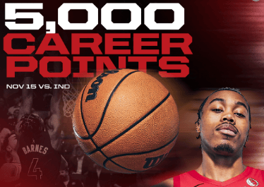 里程碑!猛龙社媒祝贺巴恩斯职业生涯总得分达到5000分