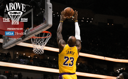 篮筐之上!湖人社媒晒詹姆斯近期赛场精彩扣篮的瞬间