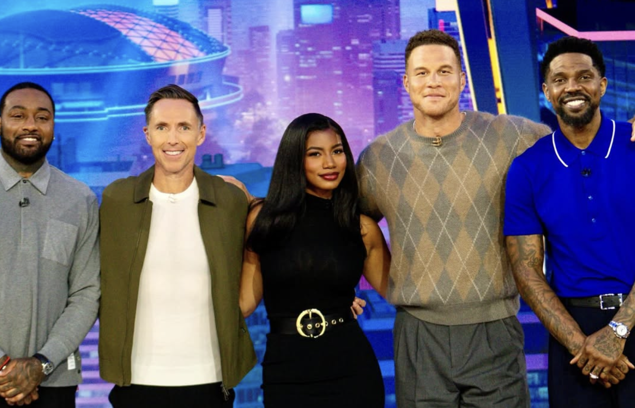天团!主持人分享和沃尔,纳什,格里芬和哈斯勒姆的合影