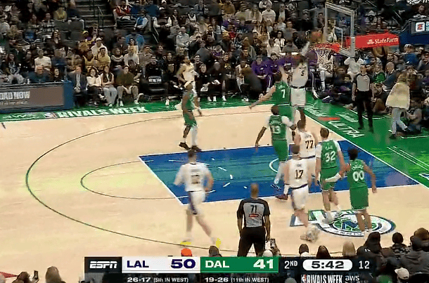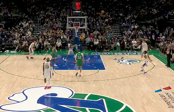 东契奇助艾顿暴扣、再助拉拉维亚三分,湖人领先独行侠14分