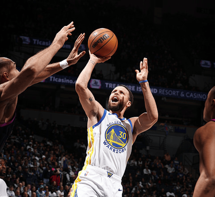 库里干拔三分投进拿到22分,勇士还剩10分钟领先森林狼22分