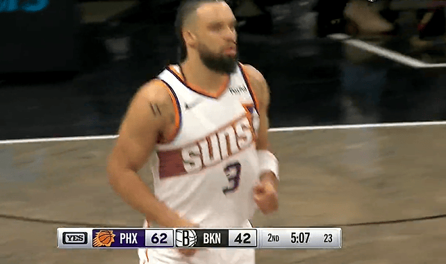 准!狄龙命中本场第四记三分,太阳领先篮网到20分分差