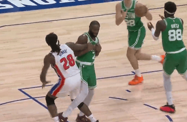 斯图尔特和布朗相互拉拽引发冲突,裁判回看吹罚两人各技犯