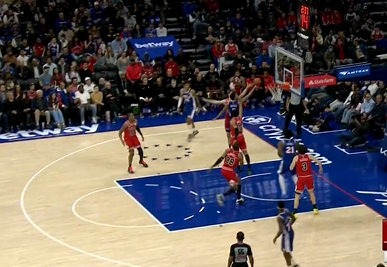 格兰姆斯径直杀入禁区上篮再中,76人次节领先公牛至22分