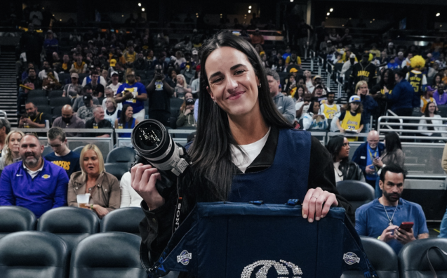 步行者官方:凯特琳-克拉克来到比赛现场,进行一些拍摄工作