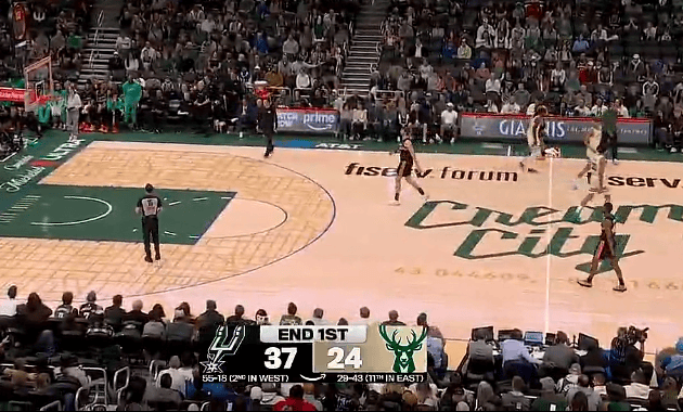 尚帕尼上篮打进,马刺次节打出7-0领先20分雄鹿叫停